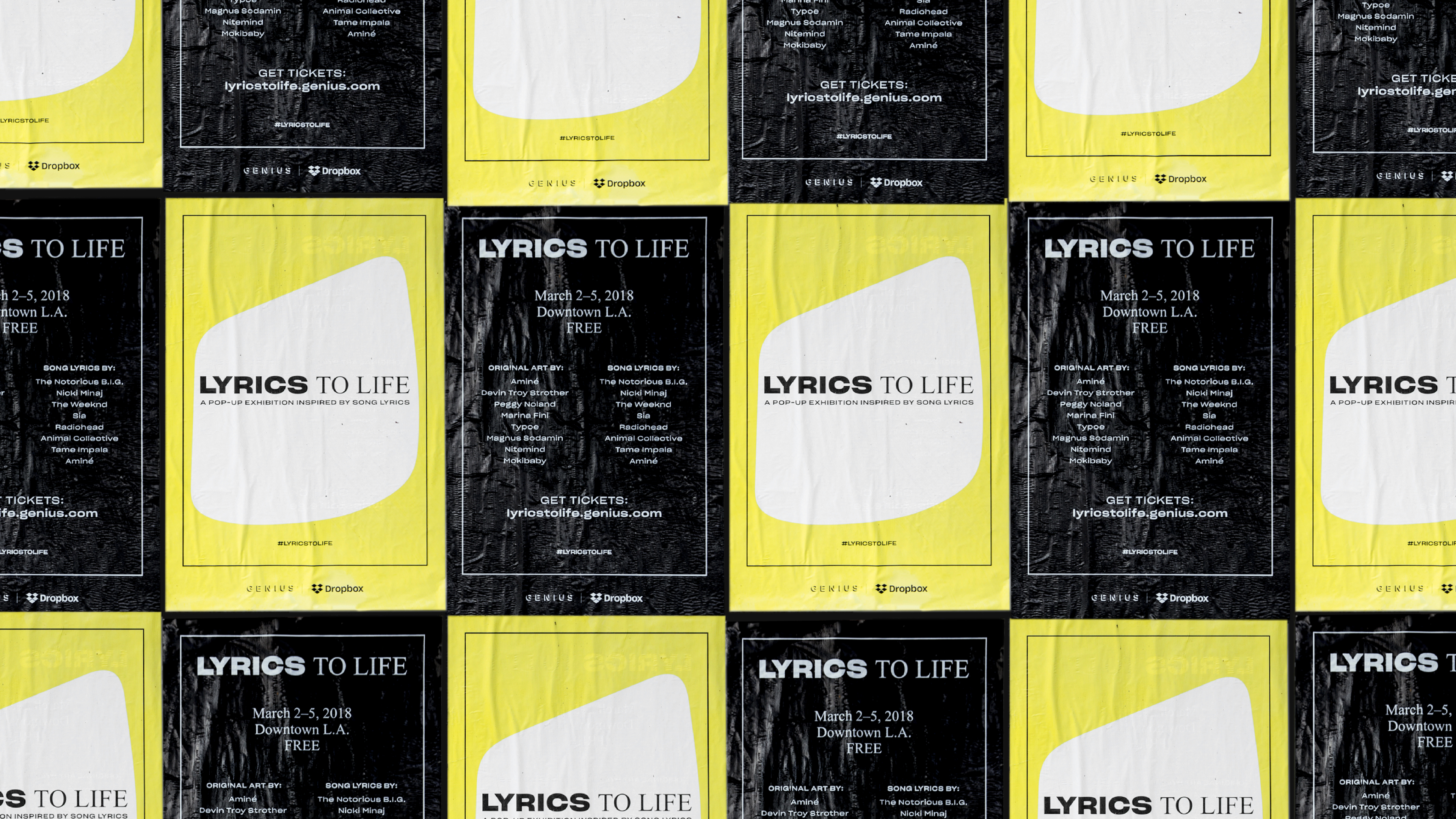 Pop-up art exhibition inspired by song lyrics. Visual artists took iconic lyrics and transformed them into physical art that music fans could see, touch & experience.
